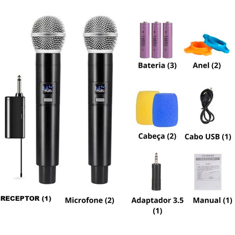 2 Microfone Sem Fio Duplo Profissional Uhf Karaoke Igreja Palestra Premium