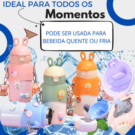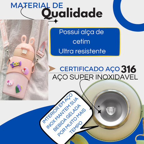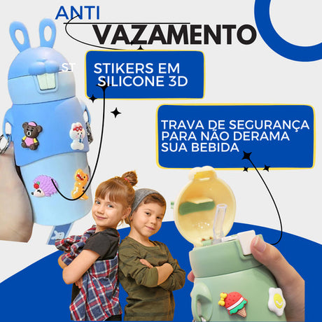 Garrafa Infantil Termica Com Alça Inox Escolar Menino Menina