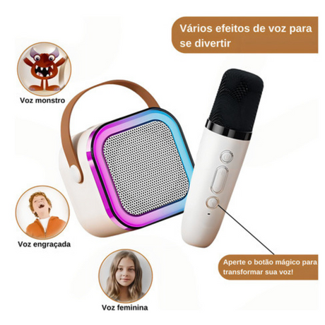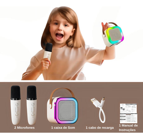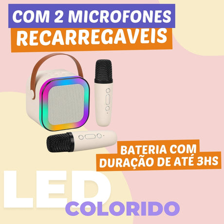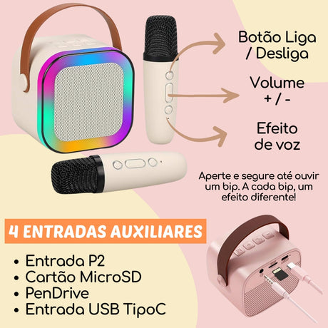 Caixa Som Karaokê Bluetooth Infantil 2 Microfone Led Premium