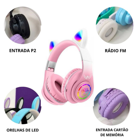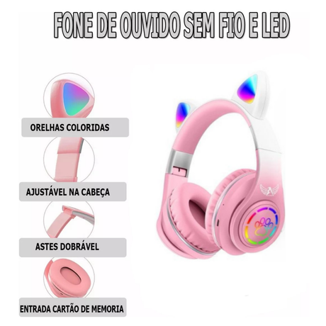 Fone Ouvido Bluetooth Infantil Coelho Led Menino Menina Luxo Premium