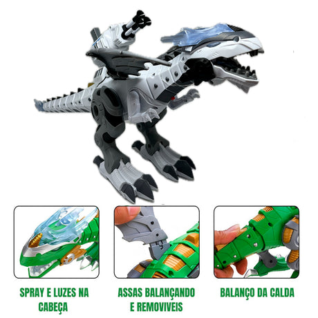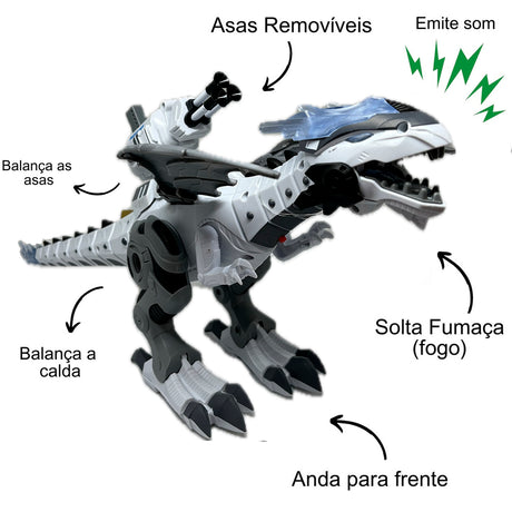 Dragão Robo Brinquedo Dinossauro Anda Bate Asas Solta Fumaça