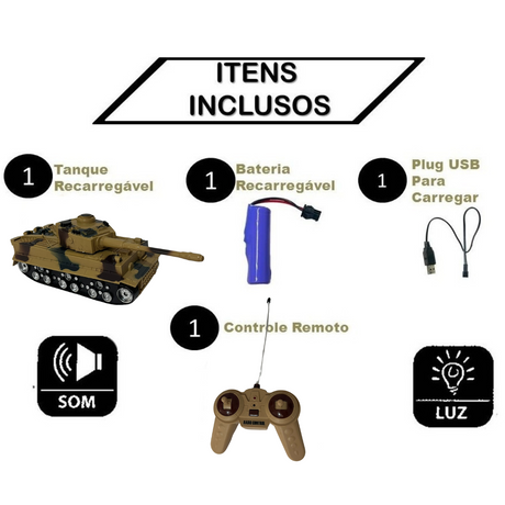 Tanque Guerra Controle Remoto Carrinho Bateria Recarregável