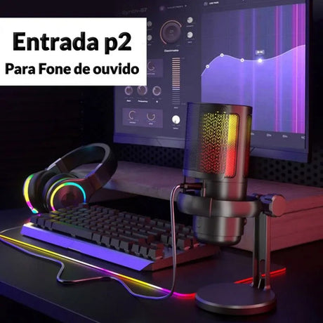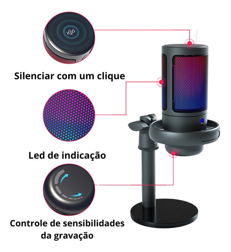 Microfone Condensador Profissional Gamer Podcast Cardioide