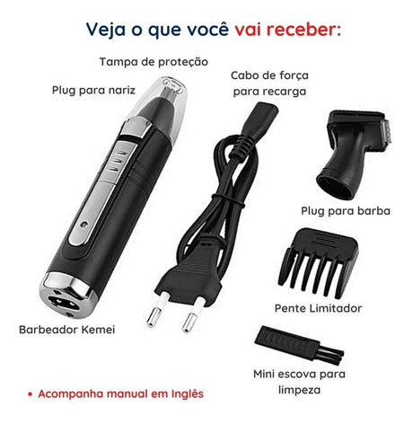 Barbeador Elétrico Sem Fio Recarregável Barba Nariz Orelha